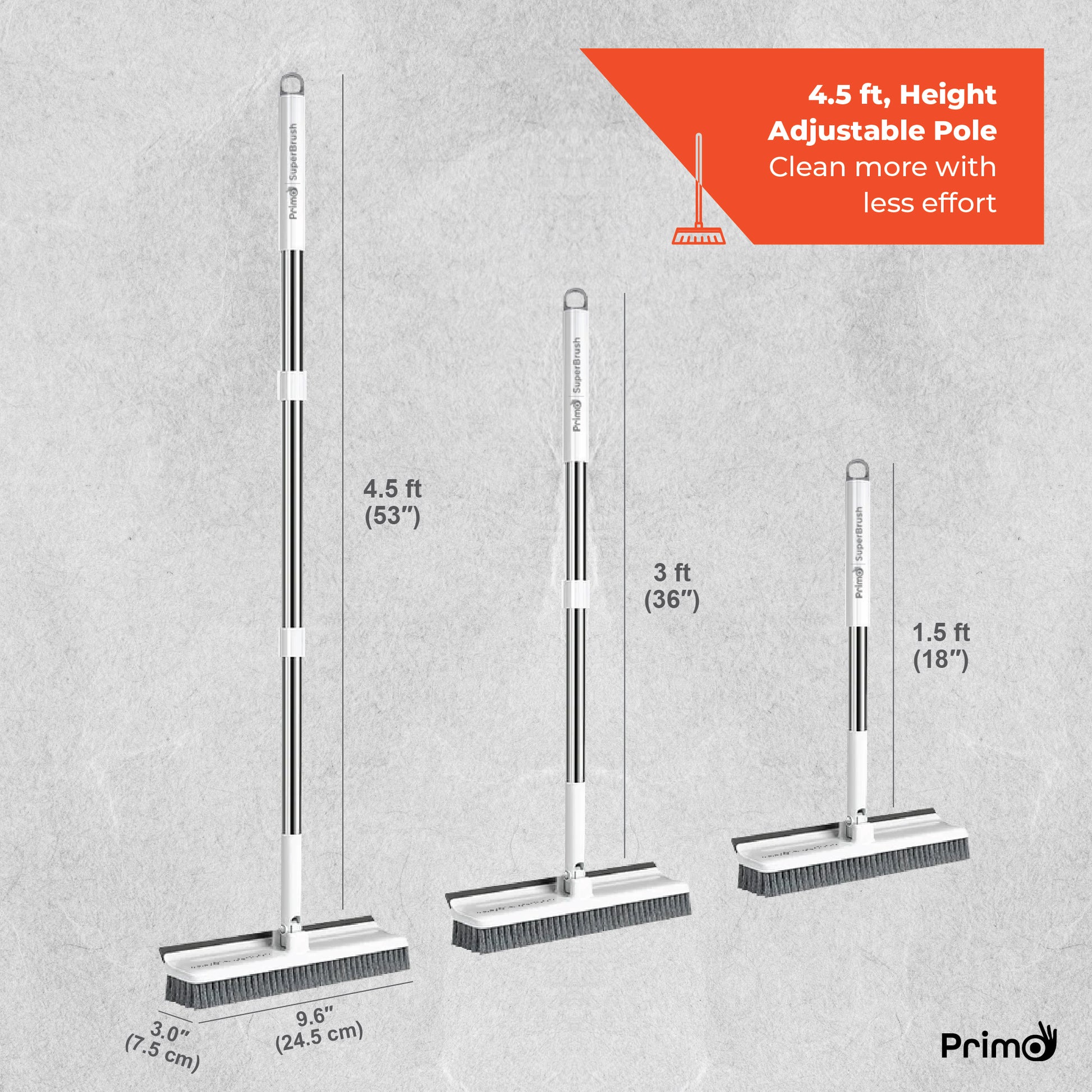 - 4.5 ft Height Adjustable Rod: Adjustable rod allows for comfortable cleaning at various heights, preventing strain and fatigue during extended cleaning sessions.